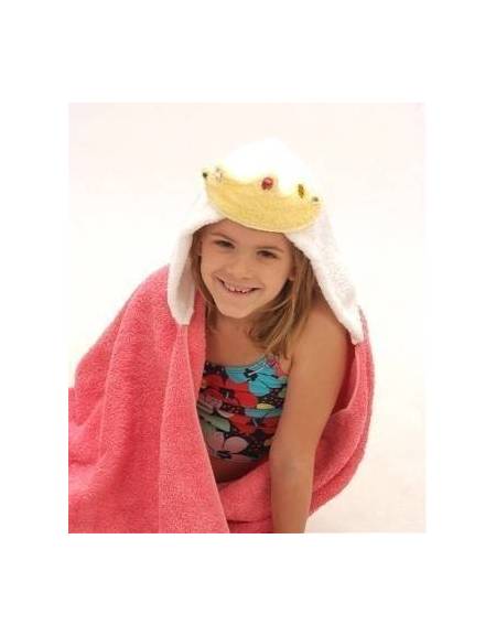 Morbido e assetato perché capace di un alto potere assorbente questo asciugamano con cappuccio a forma di coroncina di principessa è tanto comodo quanto adorabile! Renderà più invitante il bagno alla tua principessina e farà morire di invidia i tuoi amici più "adulti"... Usalo anche se sei un maschietto, dai retta, le ragazze adorano le principesse!
