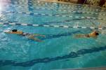 Larghezza: Da fare in una piscina con 8 corsie. Pinne per i nuotatori al di sotto dei 12 anni, gli altri a piedi nudi. Devono nuotare la piscina in larghezza, quindi passando sotto le corsie, da muro a muro.