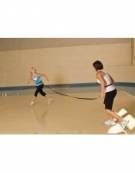 Utilizzato in allenamento di calcio, rugby e molti altri sport per serie di scatti, velocità, reattività e agilità. Il velcro che collega le due estremità delle cinghie si separa se i due atleti si allontanano troppo. Due cinture di nylon resistentissimo, con fibbia regolabile laterale in plastica, collegate da una cinghia, anch'essa di nylon tenuta insieme da uno strap in velcro. Le cinture si regolano fino a una circonferenza vita massima di 130 cm. I componenti di questo prodotto NON sono intercambiabili.