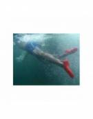 La scarpa ben aderente non ti ostacola con inutili attriti durante il nuoto e la mini pala ti dà la spinta necessaria alla propulsione.